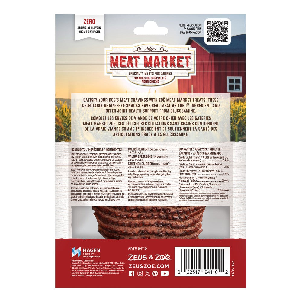 Comblez les envies de viande de votre chien avec les gâteries Meat Market Zoë — ces délicieuses collations sans grains contiennent de la viande de haute qualité comme ingrédient principal et favorisent la santé des articulations grâce à la glucosamine.