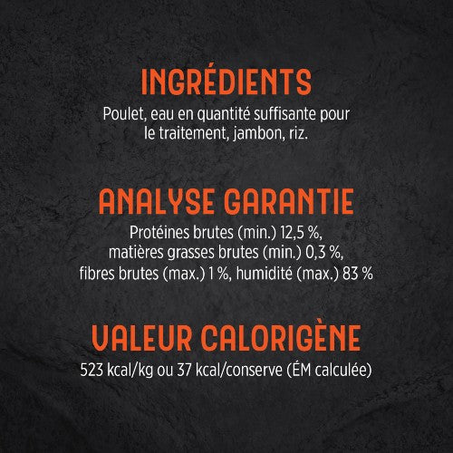 Votre animal de compagnie mérite ce qu’il y a de mieux, c’est pourquoi la nourriture Pollo Con Prosciutto est exempte de colorants, d’arômes et d’agents de conservation artificiels. C’est plus qu’un repas, c’est une déclaration d’amour, assurant ainsi un repas complet et équilibré pour votre animal de compagnie.