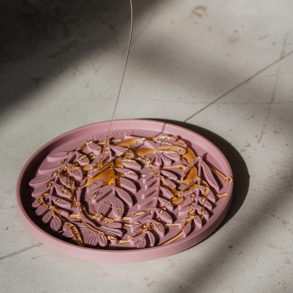 Rendez l'heure du goûter plus enrichissante avec le tapis à lécher Garden Enrichment Blush Pink!