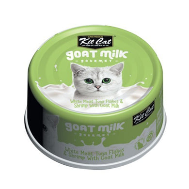 Conserve pour chat Kit Cat - Thon blanc effiloché et Crevette au lait de chèvre 70g