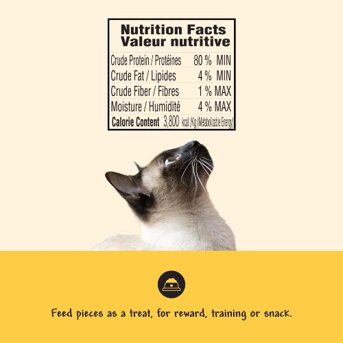 - Fabriquées à partir de poitrine de poulet pure à 100 %, ces gâteries sont une excellente source de protéines de haute qualité et de nutriments essentiels comme le sélénium, le phosphore et la vitamine B6, essentiels au maintien de la santé globale de votre chat.