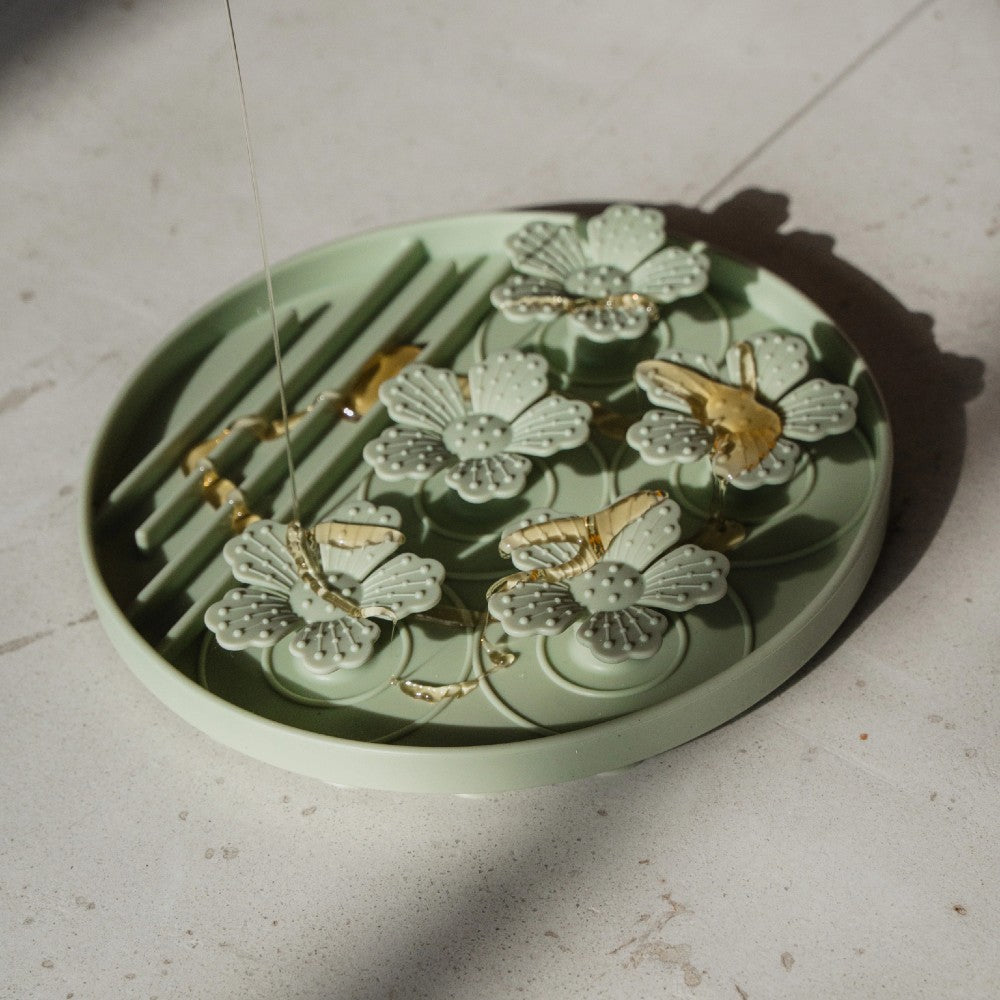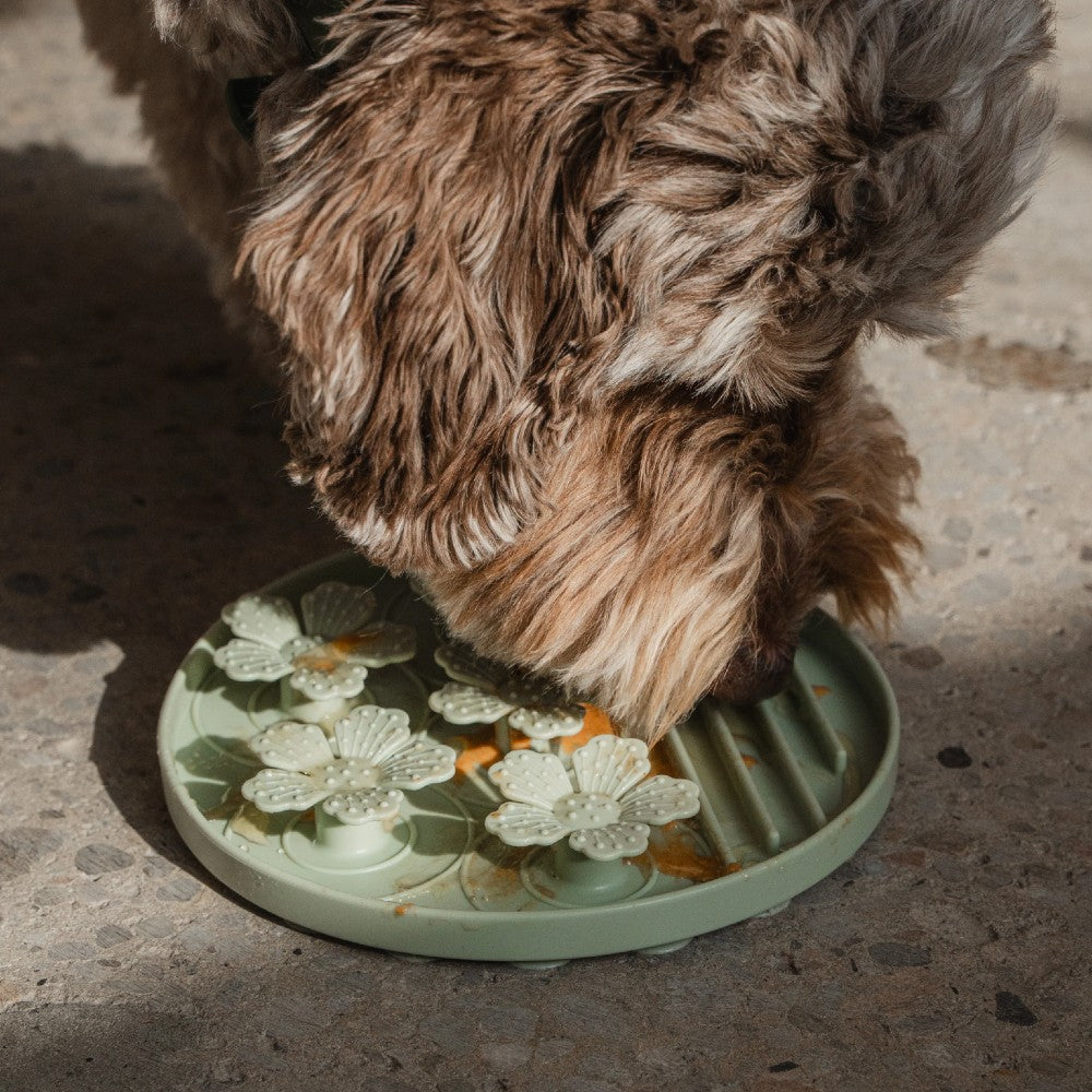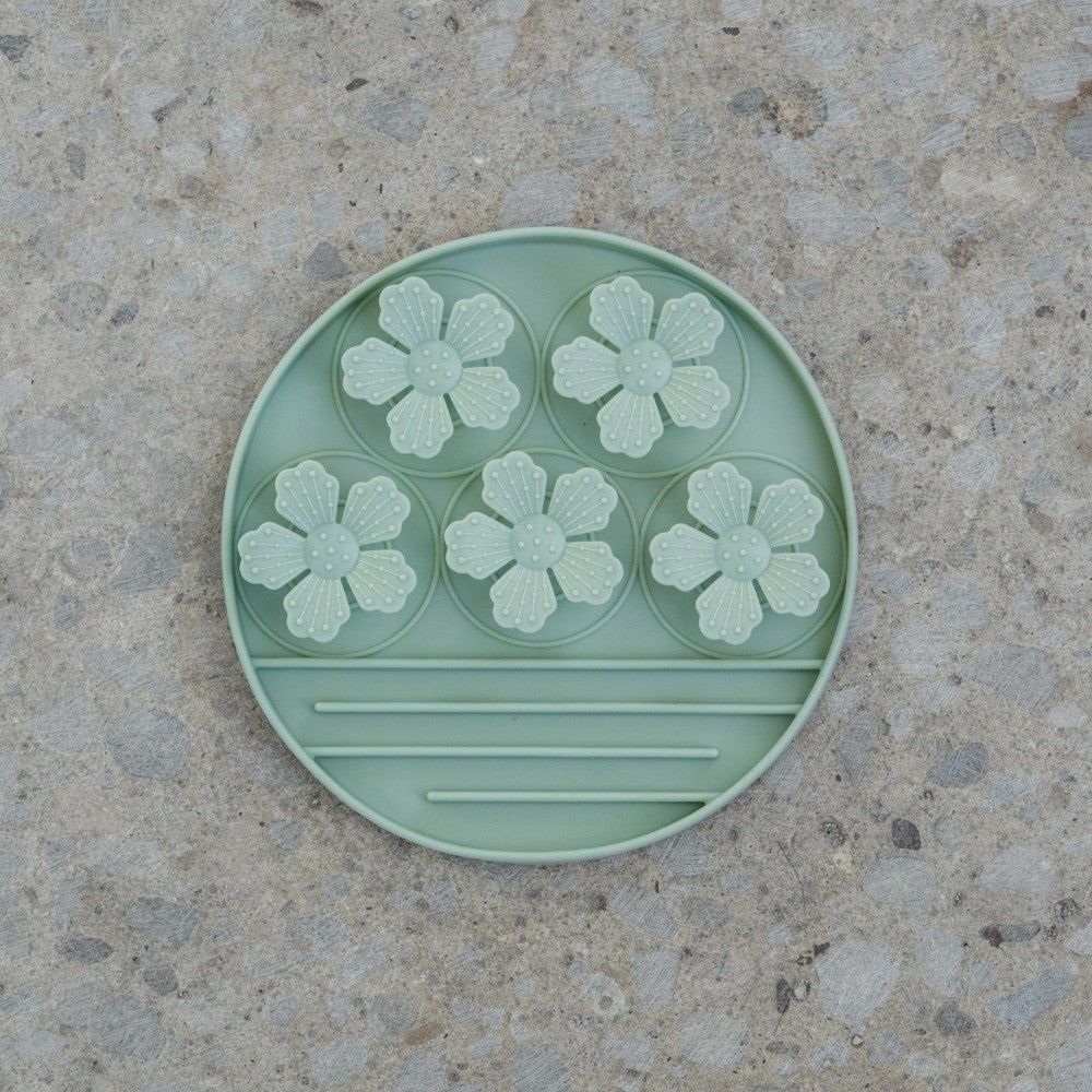 Dexypaws Tapis de léchage en silicone "Cache-cache" à alimentation lente - Fleurs - Vert sauge