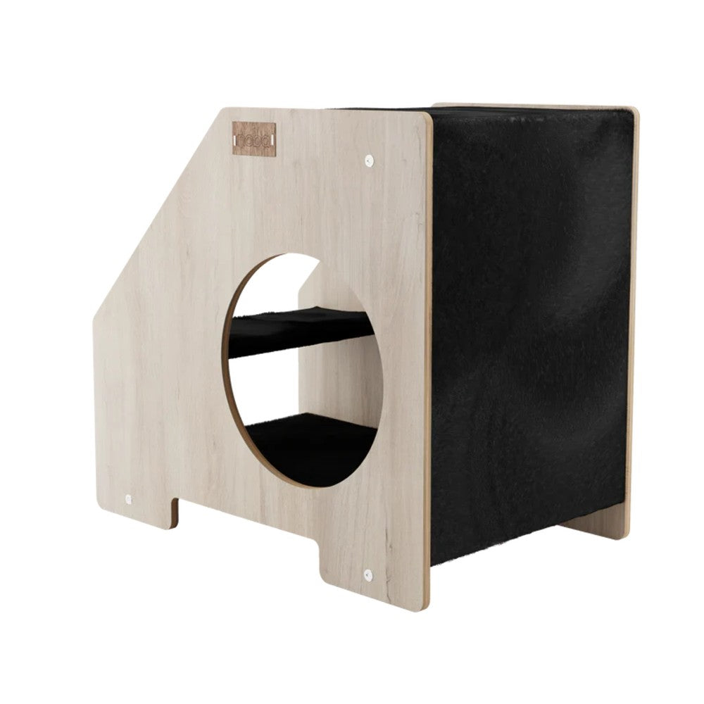 Voici notre cachette d'escalier pour chats et petits chiens , un meuble pour animaux de compagnie polyvalent et élégant conçu pour grimper, jouer, se cacher et dormir. Fabriquée en contreplaqué canadien de première qualité, cette cachette présente un design moderne et minimaliste, parfait pour tout décor d'intérieur.