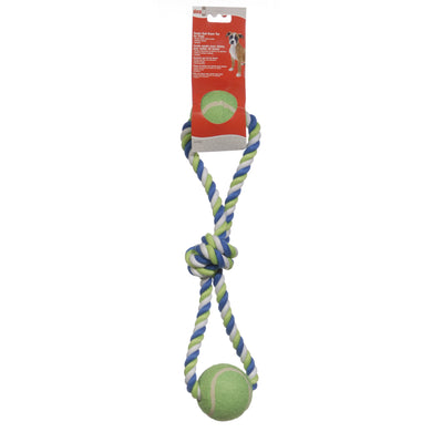 Dogit Coiled Cotton Rope with Tennis Ball, Blue, Lime Green and White