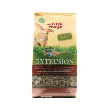 With Living World Food Extrusion, rabbits don't sort their food and therefore waste their food. The specially balanced formulation of Extrusion Food contains all the essential protein, fiber, vitamins and minerals to help rabbits maintain healthy, soft, lustrous coats and strong bones