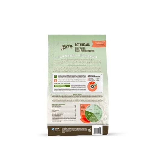 Made in Canada from wholesome ingredients, Botanicals Living World Green adult guinea pig food is a pelleted food that provides natural, complete and balanced nutrition containing high-quality Canadian timothy and cellulose rich in fiber, an essential nutrient promoting good digestion and overall well-being.